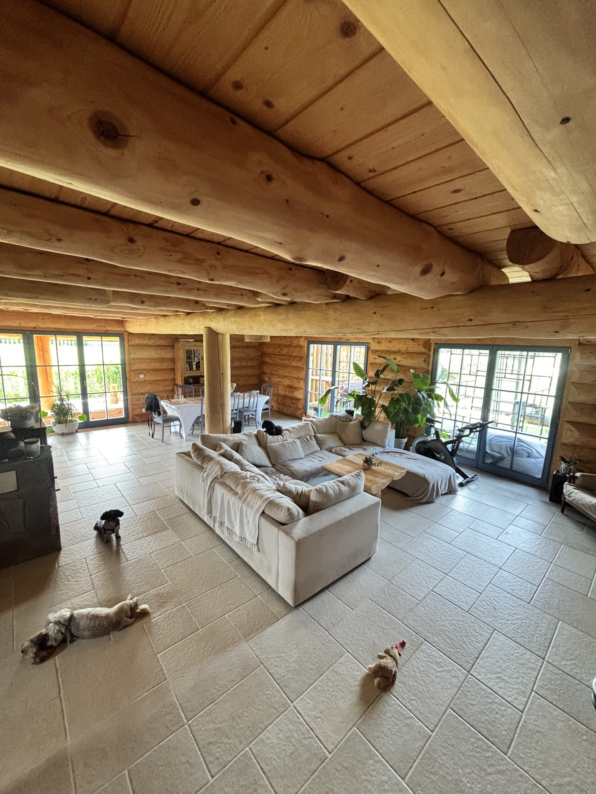 Drewniany, klimatyczny dom przy lesie o powierzchni ok 300 m2. Cały wykonany z bali drewnianych. Przed budynkiem jeszcze są niektóre rzeczy do dokończenia oraz drobiazgi w domu. Panuje w szczególny ciepły klimat.